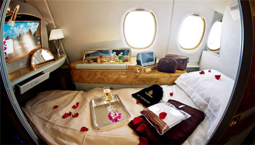 僅僅讓機(jī)艙變得高科技還不夠。一些航空公司的機(jī)艙也朝酒店化的方向設(shè)計(jì),阿迪哈德航空就推出了第一個(gè)空中包房,12平方米的空間內(nèi)包括獨(dú)立的客廳、衛(wèi)生間和擁有雙人床的臥室,以及專屬的廚師和管家。