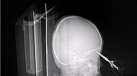 剪刀插進了顱骨,形成氣顱