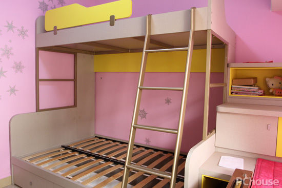 1、高低床的設(shè)置,滿足了丫丫想跟爸爸媽媽一起睡的小愿望。