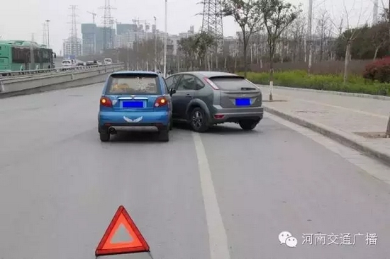 3、為避免發(fā)生次生交通事故,以及在處理事故時被當成違法停車誤抓拍,請在事故處理完畢之前,全程開啟雙閃燈,放置三角警示牌;