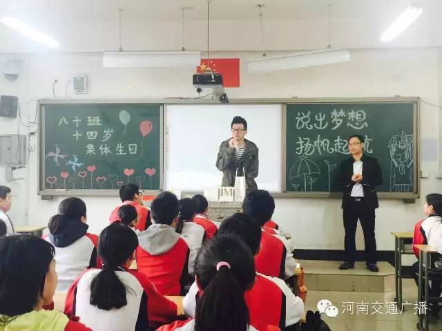 班主任李少鋒老師很激動(dòng),他說,沒想到一條小小的微信,竟然真的請到了河南交通廣播主持人來給同學(xué)們送蛋糕,他說,這樣的班會(huì)開得很有意義,讓孩子們學(xué)會(huì)分享,是與同學(xué)們心貼心的交流。