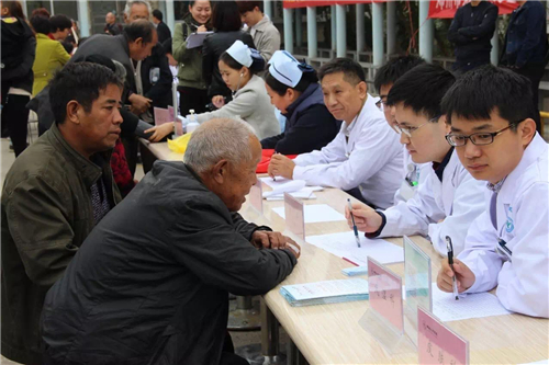 這位老人感動(dòng)地說:“這些醫(yī)生真負(fù)責(zé),坐下幾個(gè)小時(shí),忙得連點(diǎn)水也沒喝上!他們看我們歲數(shù)大了,看病不方便了,今天專門來這里,為我們看病、查身體,開藥,都不收錢,我們真高興,生活在這樣一個(gè)社會(huì)真知足!”