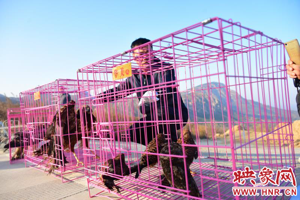 下午16時(shí)許,車隊(duì)到達(dá)了鄭市具茨山頂峰。16時(shí)10分,大家將鐵籠子一一卸下,擺放在路面上。