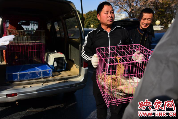 13日下午14時(shí)許,鄭州市人民公園西門口,鄭州市林業(yè)局野生動(dòng)物救護(hù)站的工作人員將幾只鐵籠子分別裝上面包車。籠子里裝著的是救護(hù)站近段時(shí)間救護(hù)的已經(jīng)具備放生條件的鳥類和獸類,這些動(dòng)物將在自然條件比較優(yōu)越的新鄭市具茨山放生。