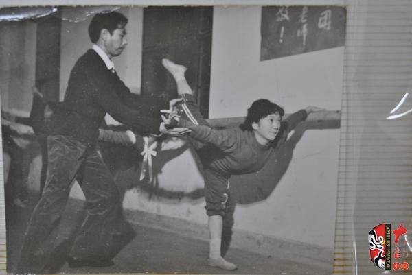 著名京劇演員沈建瑾(右)在給武慧敏(左)比戲