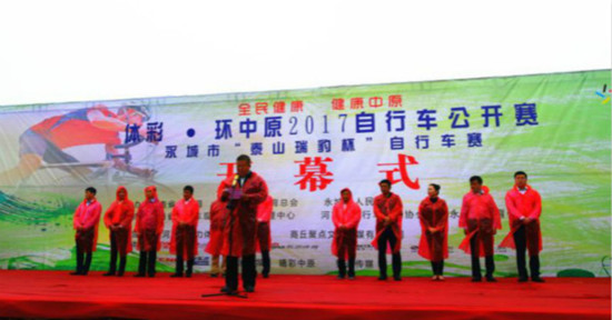 9月27日,以“全民健康,綠色中原”為宗旨的“體彩·環(huán)中原2017自行車公開賽--永城市泰山瑞豹杯自行車賽”在河南省永城市日月湖畔舉行。河南省自行車運(yùn)動(dòng)管理中心書記李健、永城市人大常委會(huì)副主任駱本京、永城市人民政府副市長(zhǎng)吳英杰、永城市教育體育局副局長(zhǎng)趙海濤等相關(guān)部門負(fù)責(zé)人以及來自國內(nèi)外600多名運(yùn)動(dòng)員和多家媒體參加了啟動(dòng)儀式,啟動(dòng)儀式由永城市政府辦公室副主任杜平主持。