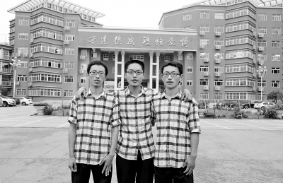 本報南陽訊南陽有一家三胞胎參加了今年高考,全過了一本分?jǐn)?shù)線,喜壞了父母,也轟動了南陽。昨日記者采訪時,身著同樣的花格子上衣、黑褲子,同樣戴著眼鏡的三兄弟正在與老師商量著填報志愿,三個人的臉上一直掛著微笑。