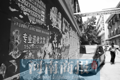 在鄭州的大街上,經(jīng)常會看到各種關于討債、調(diào)查的小廣告。