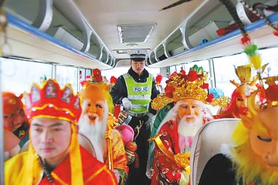 經(jīng)過(guò)省交警總隊(duì)核實(shí),濟(jì)源市交警支隊(duì)民警在執(zhí)勤中確實(shí)遇到此事。大河報(bào)記者隨后聯(lián)系到濟(jì)源市交警支隊(duì)宣傳科相關(guān)人士,他講述了這個(gè)事情。2月7日,濟(jì)源交警在濟(jì)源市207國(guó)道執(zhí)法服務(wù)站執(zhí)勤時(shí),在檢查點(diǎn)攔下了“孫悟空”駕駛的一輛大巴車,令交警想不到的是,車上居然還坐著一車《西游記》中的“神仙妖怪”,其中有“唐僧師徒”、“財(cái)神”、“土地神”、“小鉆風(fēng)”、“牛魔王”、“獅子精”、“白骨精”等,“當(dāng)時(shí)我們民警檢查時(shí)感覺(jué)自己‘穿越’了”。