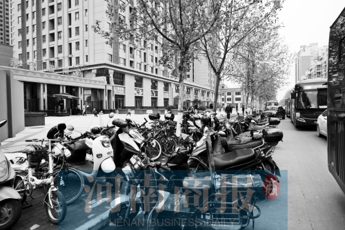 家住鄭州經(jīng)三路與廣電南路交叉口附近嘉辰麗景苑小區(qū)的李先生一直把電動(dòng)車停放在小區(qū)大門外的人行道上。原因是小區(qū)非機(jī)動(dòng)車停放點(diǎn)兒沒(méi)建好。而停放點(diǎn)建成后,物業(yè)要收費(fèi)。李先生等業(yè)主因此事與物業(yè)產(chǎn)生了分歧。