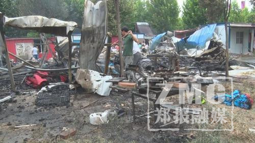 現(xiàn)場村民介紹,火災(zāi)發(fā)生時附近有人正在做滿月酒,屋頂電線突然“噼啪”作響,火星濺下引燃了安置區(qū)的簡易房,失火房屋內(nèi)放置有生產(chǎn)包的設(shè)備和成捆的布匹。