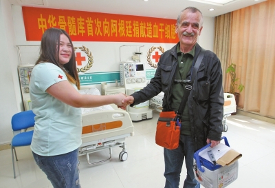 “感謝你!”準(zhǔn)備妥當(dāng)后,喬治再次來到武佳面前,主動(dòng)與她握手,并用中文對(duì)這位河南姑娘道謝。喬治已做取送造血干細(xì)胞志愿者6年,多次來中國,每次看到志愿者獻(xiàn)愛心,挽救別人的生命,都特別感動(dòng),這次,面對(duì)這位河南姑娘真誠陽光的笑容,喬治更是暖在心頭。