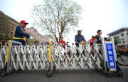 2014年4月2日,北京長安街上多個路口增設了封機動車護欄,紅燈時非機動車護欄拉起,防止非機動車闖紅燈。圖為綠燈亮起,護欄打開正常通行。