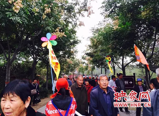 重陽(yáng)節(jié)老人們?cè)谇迕魃虾訄@樂(lè)開(kāi)了顏