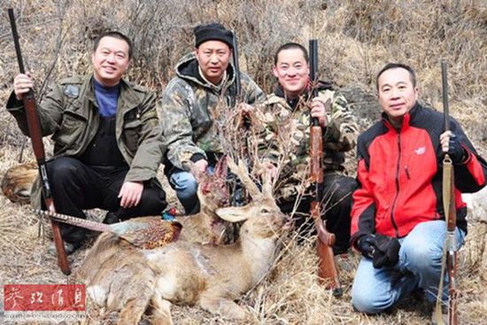 中國富人展示一場狩獵后的成果