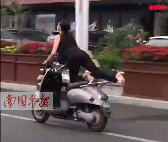 4月24日,有網(wǎng)友在微博上發(fā)布一段視頻:一女車手騎電驢的方式有些奇葩,車輛行駛過程中,女子突然往后伸出大長腿,擺出“飛行”姿勢一路前行?!薄 ∵€有網(wǎng)友調(diào)侃說,“沒想到你是這樣深藏不露的大長腿”,認為該女子的駕車行為頗為奇葩。