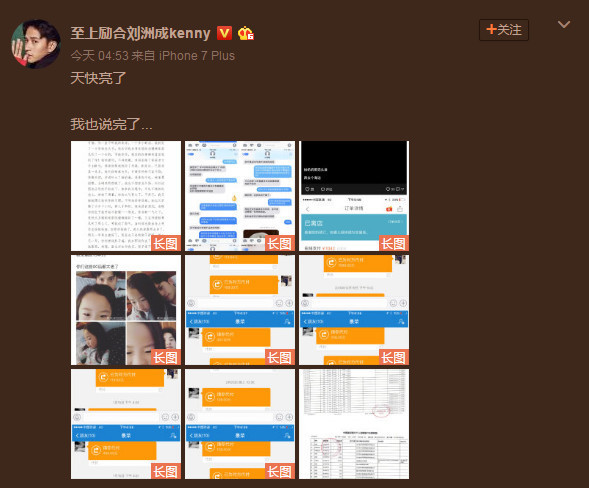 搜狐娛樂訊 5月23日凌晨,劉洲成發(fā)微博回應家暴致前妻林苗流產及要求前妻出錢買房等傳聞。劉洲成在文中以時間為緯度講述他與前妻相識相愛到結婚的過程,還列舉出前妻從懷孕到流產的事例,劉洲成在文中還稱“從認識你開始,就從沒花過你和你家一分錢”。此外,劉洲成更是曬出了昔日的聊天記錄、代付清單、借記卡賬戶歷史明細清單等證據,疑似反駁前妻所述不實。