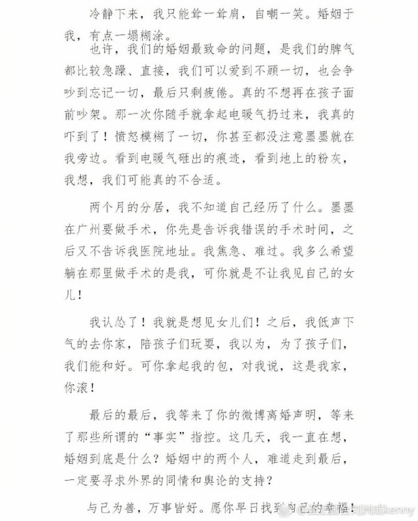 劉洲成凌晨發(fā)長文否認家暴