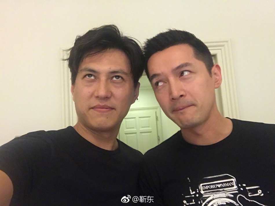 新浪娛樂訊 6月19日早,靳東在微博上曬出一組與胡歌的自拍。兄弟倆素顏出鏡翻白眼擠眉弄眼做鬼臉,嗨到停不下來。