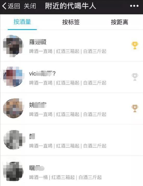 懷著對(duì)這項(xiàng)“神服務(wù)”的好奇,韓國(guó)記者還在中國(guó)特地體驗(yàn)了一番。據(jù)《中央日?qǐng)?bào)》報(bào)道,4日晚,韓國(guó)記者辦公室所在的北京市中心建國(guó)門一帶,記者嘗試使用了該軟件。建國(guó)門這附近還不算娛樂區(qū)域,但在半徑400米以內(nèi)地圖上跳出10名代喝人的位置。記者在點(diǎn)擊其中一名代喝人后立即彈出他的自我介紹——“奧運(yùn)會(huì)金牌級(jí)喝酒選手”,“酒量是白酒兩瓶、啤酒一箱”。