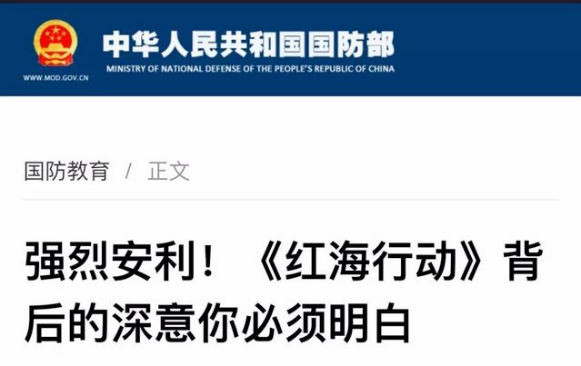 就連中國國防部也為它強勢“打call”,在其官網(wǎng)轉(zhuǎn)發(fā)一篇名為《強烈安利!〈紅海行動〉背后的深意你必須明白》的文章。