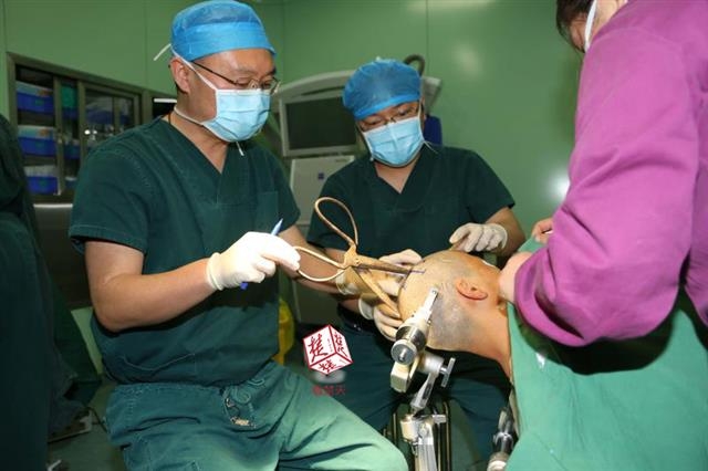 醫(yī)生檢查發(fā)現(xiàn),剪刀刀尖斜嵌在沈某顱骨里,離腦髓只有兩三毫米。所幸是斜著插進(jìn)去,如果是垂直刺入,很有可能造成癱瘓。最終經(jīng)過(guò)手術(shù),剪刀被取出,沈某目前仍在ICU進(jìn)一步觀察。