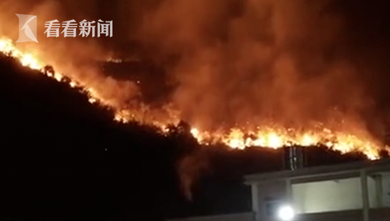 至晚上7時(shí)許,火勢(shì)已得到初步控制,但因最近天氣少雨干燥等原因,難以將火完全撲滅,晚上8時(shí),山火再次蔓延。