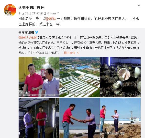 網(wǎng)友“義勇軍樹(shù)廣成林”評(píng)論說(shuō):河南老鄉(xiāng)!牛!