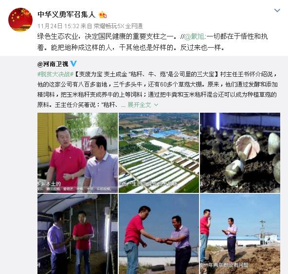 網(wǎng)友“中華義勇軍召集人”評(píng)論說(shuō):綠色生態(tài)農(nóng)業(yè),決定國(guó)民健康的重要支柱之一。