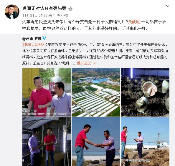 網(wǎng)友“世間無(wú)對(duì)錯(cuò)只有強(qiáng)與弱”評(píng)論說(shuō):火車跑的快,全憑頭來(lái)帶!有個(gè)好支書(shū)是一村子人的福氣!