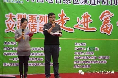 這次活動由河南人民廣播電臺主辦,河南電臺綠色頻道FM107.4、河南電視臺新農村頻道、鄭州航空港經濟實驗區(qū)管理委員會IT產業(yè)園社區(qū)服務中心、富士康科技集團鄭州科技園工會委員會、河南省人民醫(yī)院,河南中醫(yī)藥大學第一附屬醫(yī)院,鄭州大學附屬中心醫(yī)院、鄭州人民醫(yī)院聯(lián)合承辦。