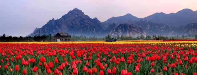 四月,天磨湖畔千畝郁金香含苞待放,七彩花海將嵖岈山的奇峰秀水渲染得如詩(shī)如畫(huà)。