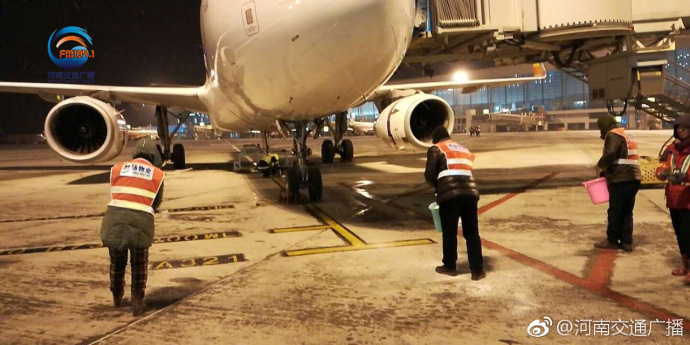 機(jī)場信息:早上七點(diǎn)半,鄭州機(jī)場仍在降雪,經(jīng)全力工作,南跑道正在安排航班起降,但放行速度較慢。北跑道正在除冰,早上出港航班均有不同程度延誤。請(qǐng)廣大乘客拔打96666問訊,為了保障旅客的安全和順利出行,機(jī)場各個(gè)崗位徹夜無眠工作。