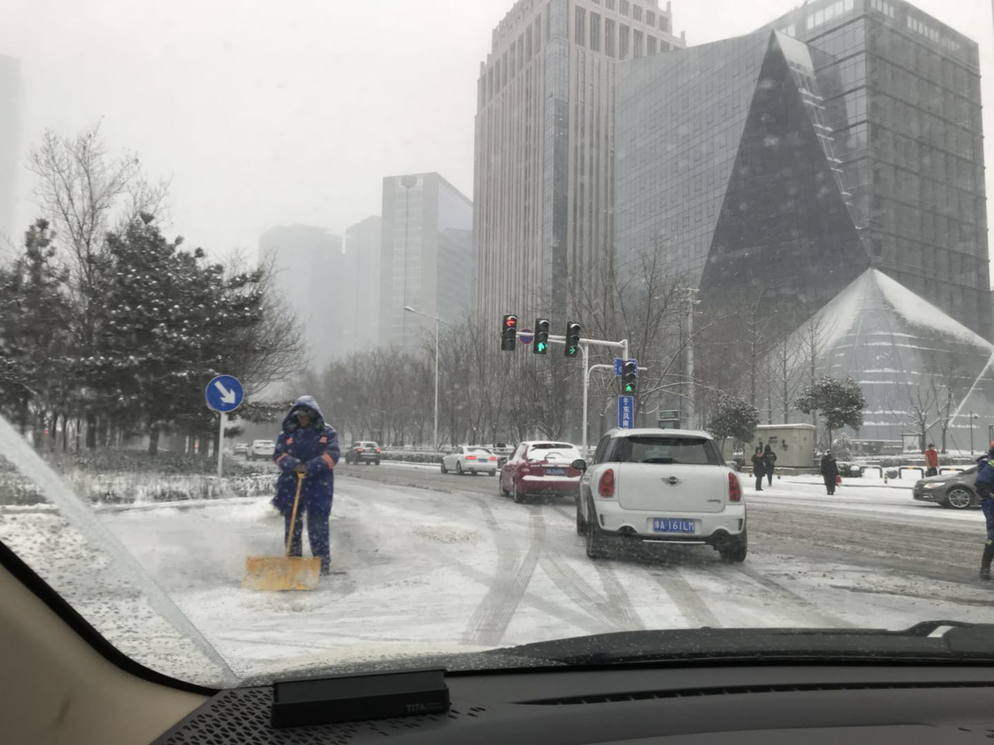 鄭州機(jī)場緊急啟動(dòng)除雪保障預(yù)案,機(jī)場各崗位徹夜未眠連續(xù)工作,對(duì)飛機(jī)跑道、滑行道、停機(jī)坪和對(duì)機(jī)場地面交通道路進(jìn)行撒鹽、掃雪等一系列除冰雪保障工作,以保障廣大旅客安全出行。只見大的除冰機(jī)上寫著:雪不凈冰不化我們不休息!