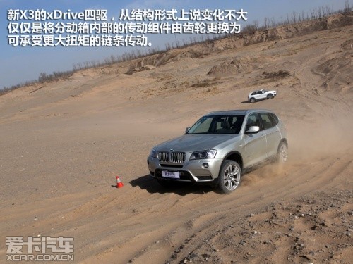 搭載3.0T發(fā)動(dòng)機(jī)的寶馬X3,很顯然比Q5更為“肌肉”,但面對(duì)松軟的沙坡它也清楚的知道:光有腿部力量是遠(yuǎn)遠(yuǎn)不夠的,還必須要結(jié)合上肢力量才有可能登頂,此刻,xDrive系統(tǒng)起到了決定性的作用。