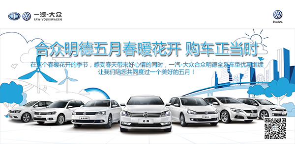 在這個(gè)春暖花開的季節(jié),感受春天帶來好心情的同時(shí),一汽-大眾合眾明德全系車型優(yōu)惠繼續(xù)。讓我們陪您共同度過一個(gè)美好的五月!