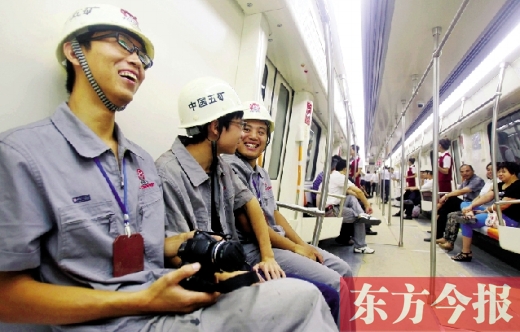 雖然是空載試運(yùn)行,但昨日東方今報(bào)記者仍和部分鄭州地鐵建設(shè)者一起,乘坐了短途運(yùn)行的地鐵列車,行車站距是體育中心站至農(nóng)業(yè)南路站,一共五站四區(qū)間。