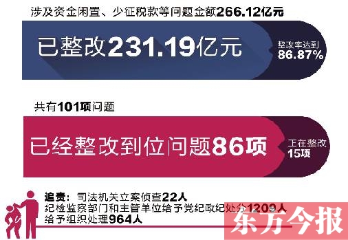 從問題金額看,審計工作報告中涉及資金閑置、少征稅款等問題金額266.12億元,已經整改231.19億元,整改率達到86.87%。 從問題數量看,審計工作報告中共有101項問題,已經整改到位問題86項,正在整改15項。 據悉,對于審計移送的違法違規(guī)問題,司法機關立案偵查22人,紀檢監(jiān)察部門和主管單位給予黨紀政紀處分1209人,給予組織處理964人。其中,對企業(yè)或個人騙取生活補貼資金問題,市縣監(jiān)察機關、業(yè)務主管部門在收回補貼資金1970萬元的同時,給予當事人、有關經辦人員黨紀政紀處分299人,給予誡勉談話等組織處理219人。(記者 梁新慧)