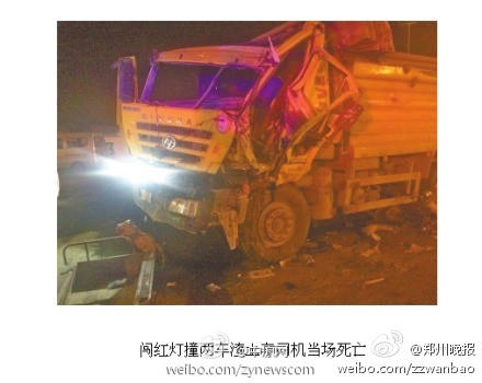 2.鄭州:渣土車凌晨闖紅燈連撞兩車 司機(jī)當(dāng)場死亡