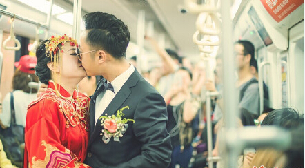 8、拉風!西安新郎怕堵車 改坐地鐵接親