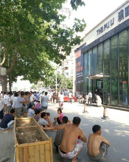 7月30日早上,鄭州黃河路與經(jīng)二路口,一百多名農(nóng)民工圍在璞麗中心售樓部門前討薪。據(jù)了解,這些民工大多來自河南,還有陜西、四川、云南等地。他們說,從春節(jié)后到現(xiàn)在的半年時間里,沒有發(fā)過工資。現(xiàn)在工地已經(jīng)停工20多天。