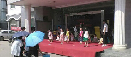 4、鄭州一幼兒園孩子烈日下排練 園長撐傘觀看