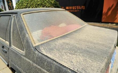 9、鄭州市民做揚塵實驗 轎車停路邊三天落滿黃土