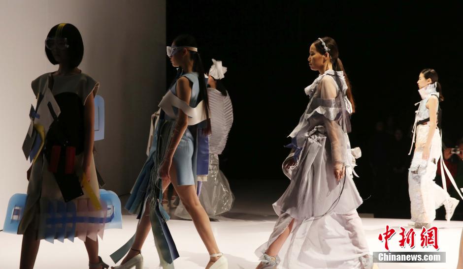 本屆北服時(shí)裝周匯集了服裝院三大專業(yè)2012級畢業(yè)生設(shè)計(jì)作品(含國際留學(xué)生)。 中新社記者 任海霞 攝