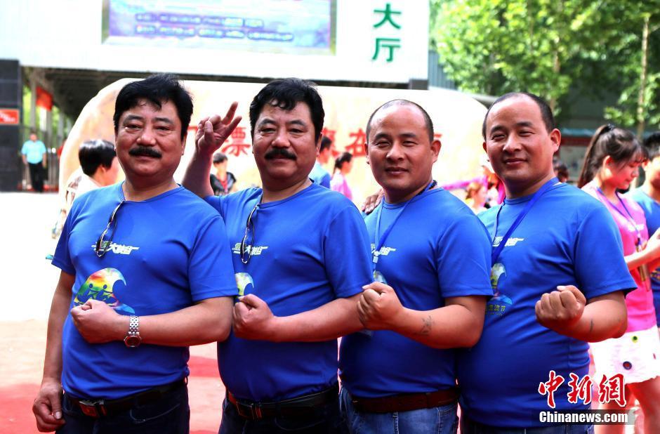 5月29日,河南三門峽,來自全國(guó)的老中青100余對(duì)雙胞胎聚集一起拍攝合影照,他們手拉手“向天笑”,一樣的裝束、一樣的臉龐,看暈觀眾,仿佛走進(jìn)了重影的世界。 王中舉 攝