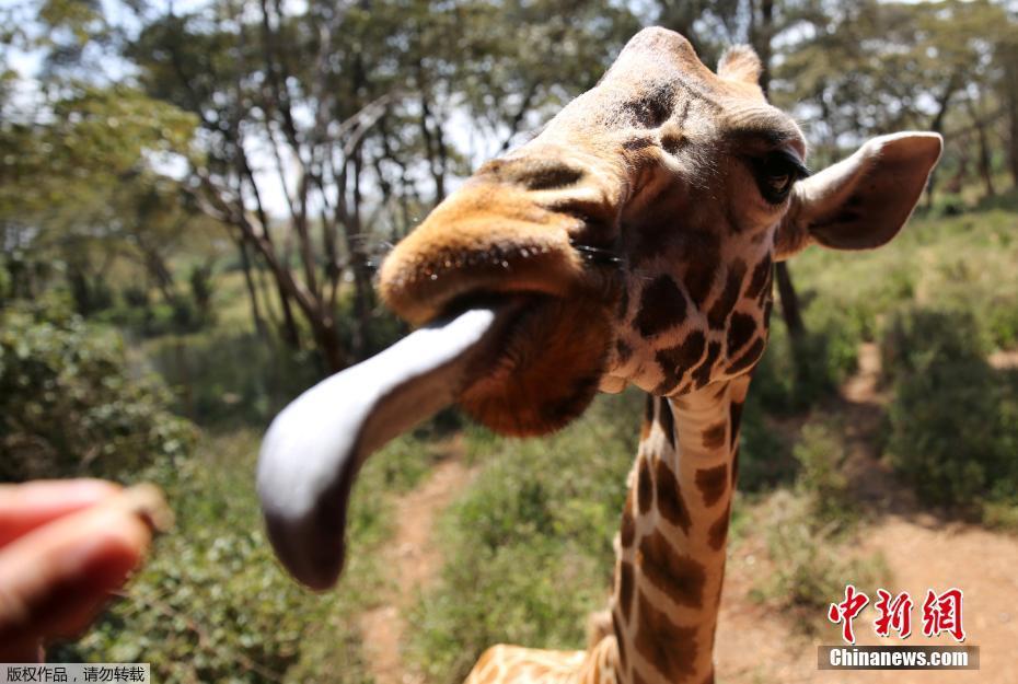 當?shù)貢r間1月15日,肯尼亞內(nèi)羅畢的一個動物園內(nèi),游客用嘴喂食長頸鹿,人與動物親密接觸,其樂融融。