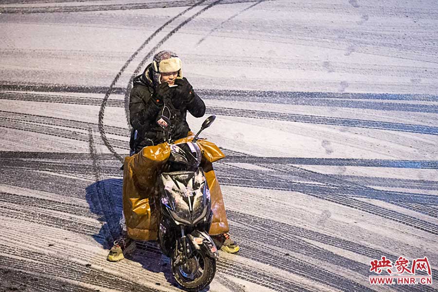一位跑腿師傅剛從四環(huán)送貨回來(lái),眉毛上都落上了雪花