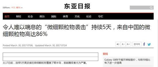 《韓聯(lián)社》3月27日:來自中國的霧霾在惡化,對策也灰蒙蒙