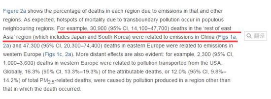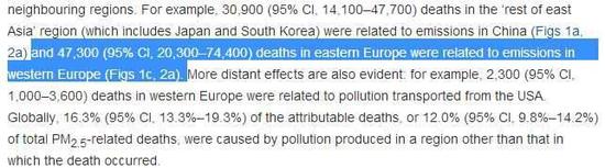 翻譯:東亞其他地區(qū)(包括日本韓國)有3.09萬人的死亡與中國的污染物排放存在關聯(lián)。(2007年數(shù)據(jù)——環(huán)環(huán)注)