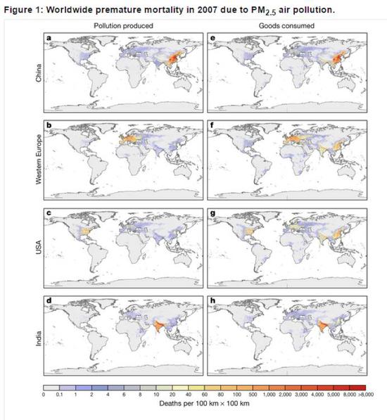另外,環(huán)環(huán)(ID:huanqiu-com) 發(fā)現(xiàn)這篇研究中提到,中國在全球貿(mào)易中所受到的污染影響更為嚴重。其中,中國有超過10.86萬人過早死亡與西歐、美國的消費相關聯(lián)。